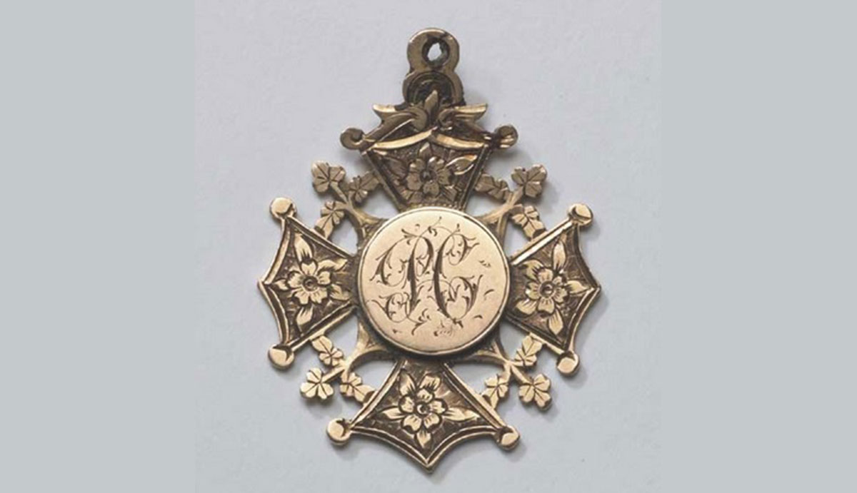Medal presented to Peter Clarke of the Pierce O'Mahony's club from Navan (Meath) for the 1895 All-Ireland football final, played on 15 March 1896, the first final to be played in Jones’ Road (later Croke Park).